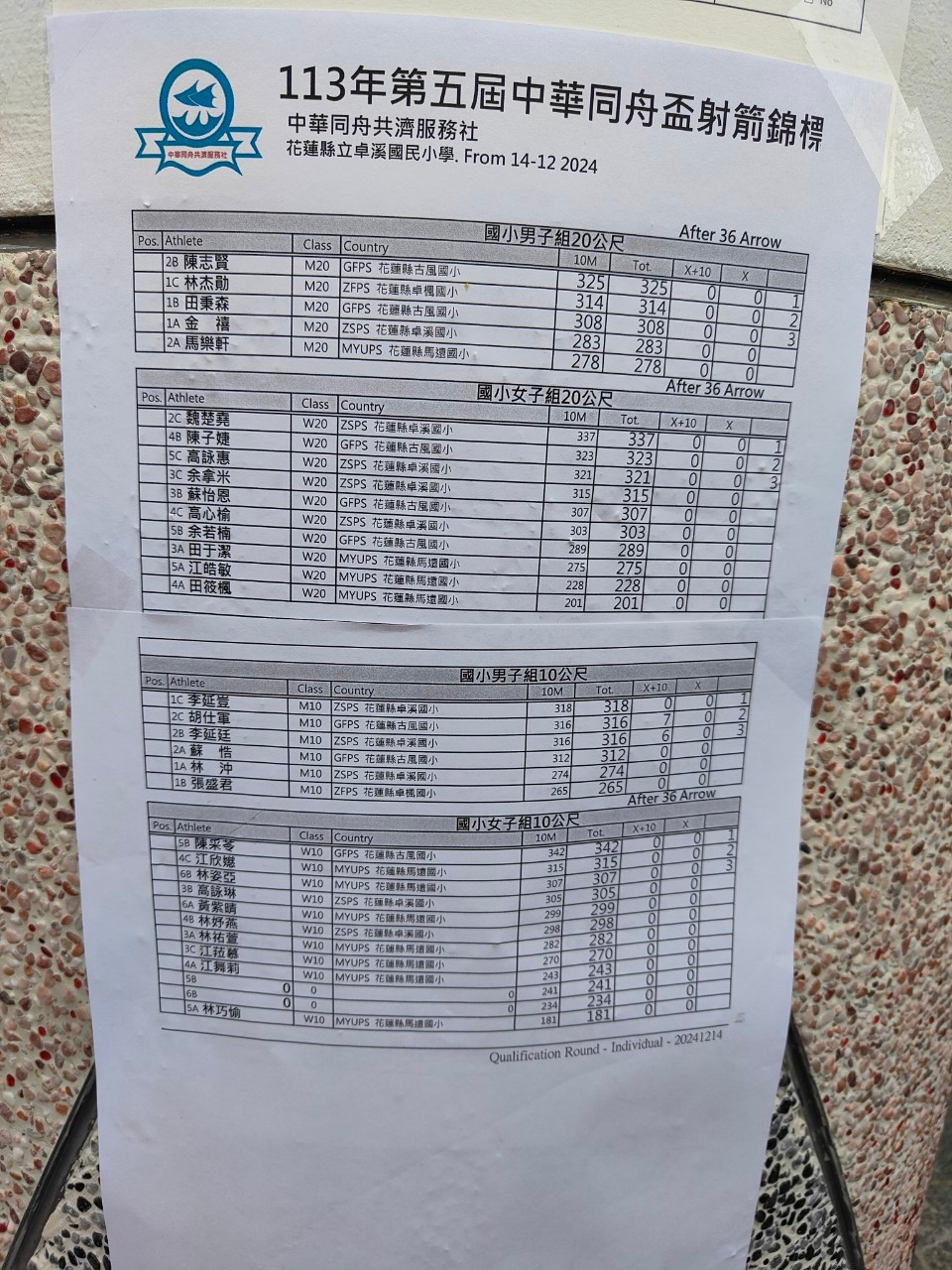 本校射箭隊參加113年同舟共濟盃射箭錦標賽,得獎名單: