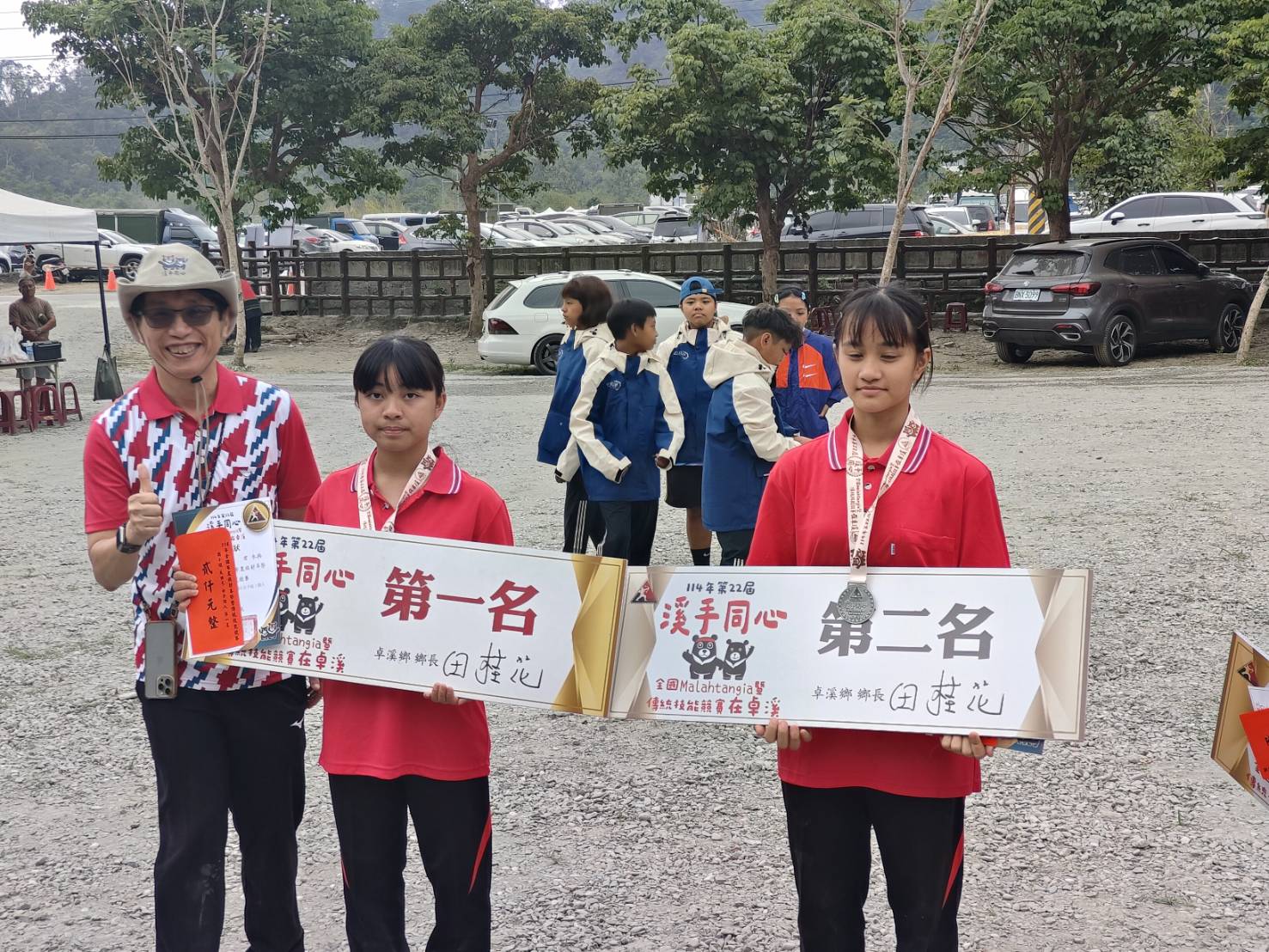 恭喜蘇同學、陳同學及田同學榮獲114年第22屆全國布農族射耳祭暨傳統技能競賽反曲弓男子組第一名、第二名及女子組第一名;同時也獲得男子團體組第一名及女子團體組第一名。